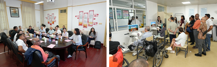 9月17日,代表團(tuán)訪問了湖南省人民醫(yī)院馬王堆院區(qū)康復(fù)醫(yī)學(xué)科??祻?fù)醫(yī)學(xué)科主任蔡華安、學(xué)科建設(shè)辦干事左盼對代表團(tuán)的到訪表示熱烈歡迎??祻?fù)醫(yī)學(xué)科三病區(qū)醫(yī)療組組長黃靚博士系統(tǒng)介紹了再生醫(yī)療技術(shù)在治療壓瘡等慢性難愈合創(chuàng)面中的應(yīng)用優(yōu)勢,并結(jié)合臨床案例,生動(dòng)展示了該項(xiàng)技術(shù)的顯著療效。分享結(jié)束后,代表團(tuán)走進(jìn)康復(fù)醫(yī)學(xué)科病房進(jìn)行實(shí)地參觀。代表團(tuán)成員對科室將創(chuàng)面管理與康復(fù)治療緊密結(jié)合的治療模式深表贊賞,紛紛表示回國后將借鑒這一理念,推動(dòng)創(chuàng)面管理與康復(fù)治療的融合,以提升患者的治療效果與體驗(yàn)。